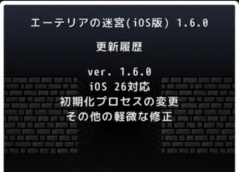 iOS版 エーテリアの迷宮 1.6.0 アップデートが公開されました。今回のアップデートでは、